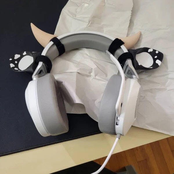 This pair of cow ears and horn set will easily attach to any pair of headphones with a simple piece of hook and loop that you can cut to your size for liking. They add a unique factor to your live stream or while gaming. Can also be easily attached to a large headband as well. They are lightweight and comfortable while being attached to your headset. A wonderful gift for that special someone for holidays, birthdays, or a treat to yourself.
