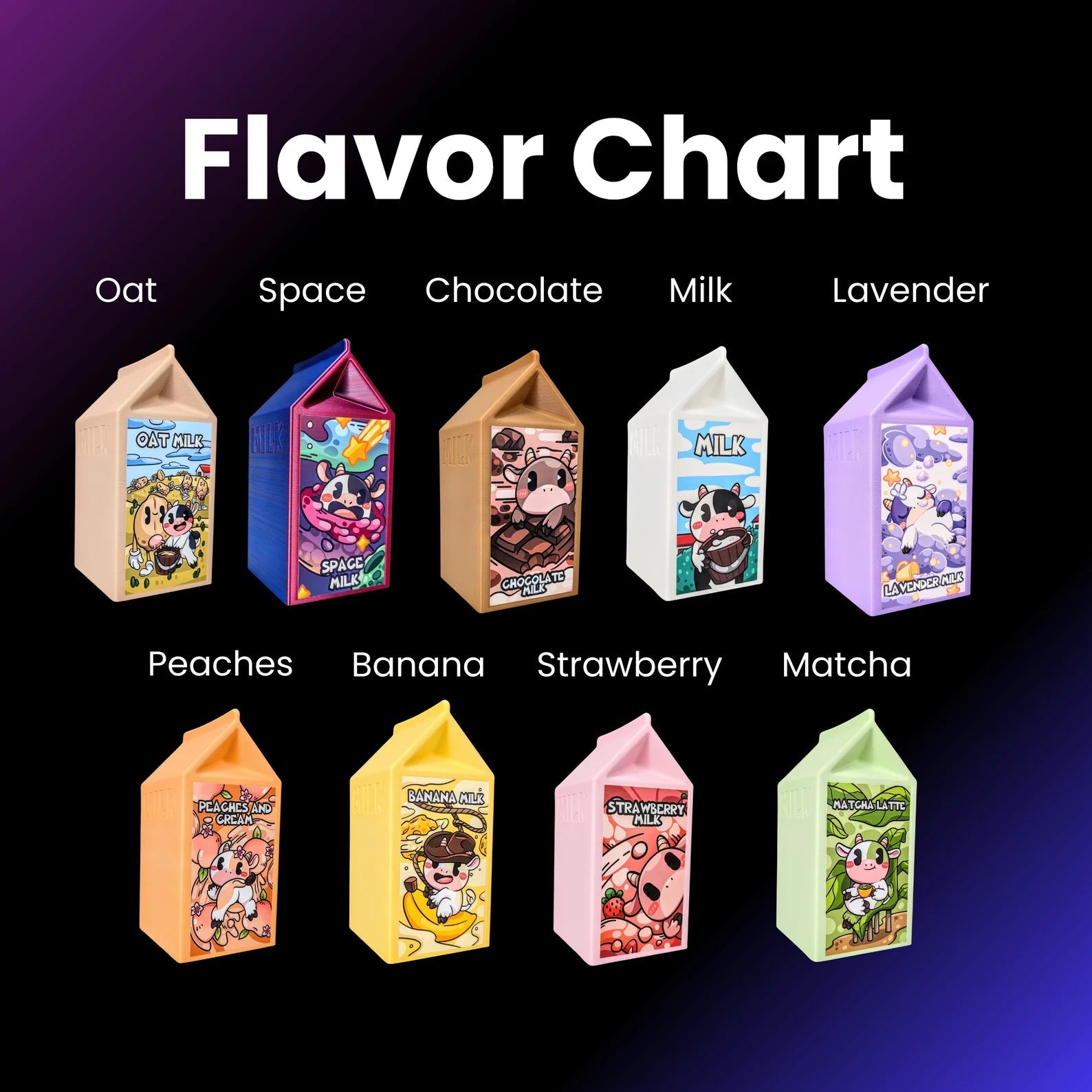 - 3. Milk: For those who appreciate simplicity and elegance, the Milk flavor is a timeless choice. The clean white design blends seamlessly into any decor while maintaining the cute and charming milk carton shape.