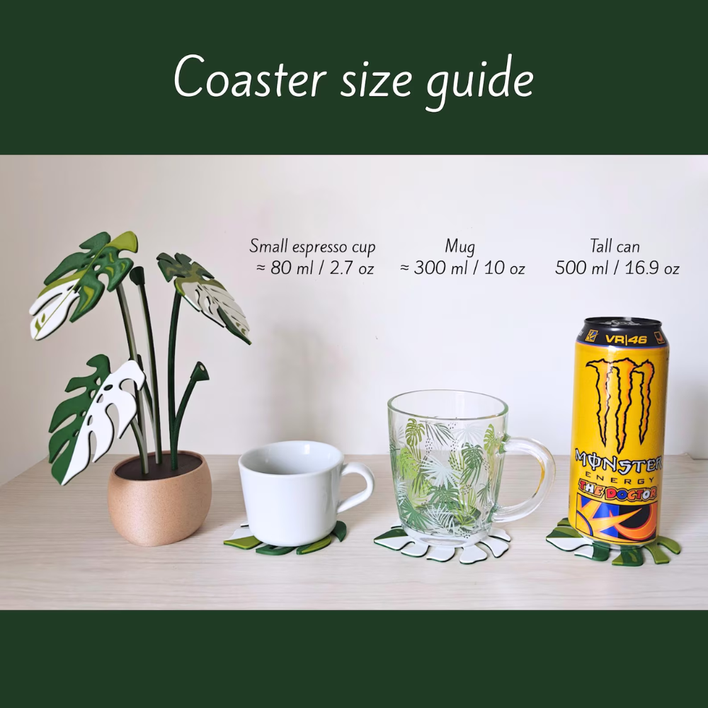 Beautiful and easy to grip, just like in the pictures. A little smaller than expected, but the coasters are a normal size and perfectly adequate. And of course, pretty decorations too.